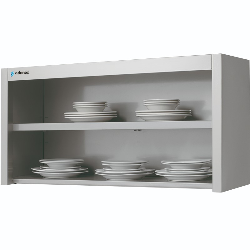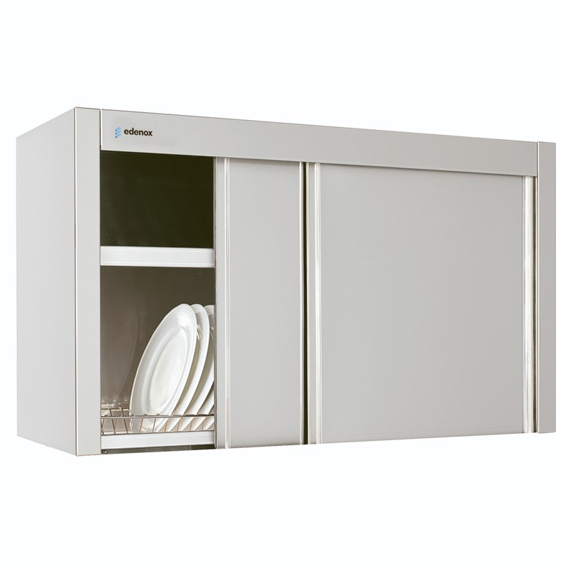 • Armario de pared con escurridor de platos de acero inoxidable en la parte inferior.