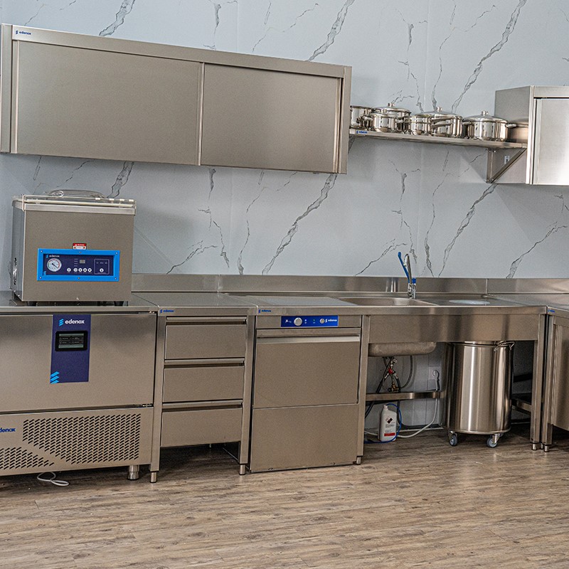• Estante intermedio perforado, de acero inoxidable regulable en altura.