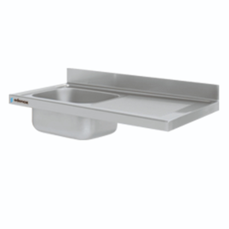 • Encimeras de profundidad 600 mm con fregadero y peto posterior de 100 mm de altura totalmente soldado.