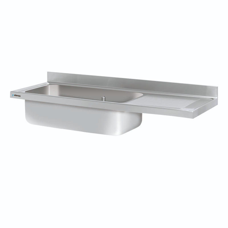 • Encimera de profundidad 700 mm con fregaderos, peto posterior de 100 mm de altura y frontal de 50 mm de altura. Totalmente soldado.