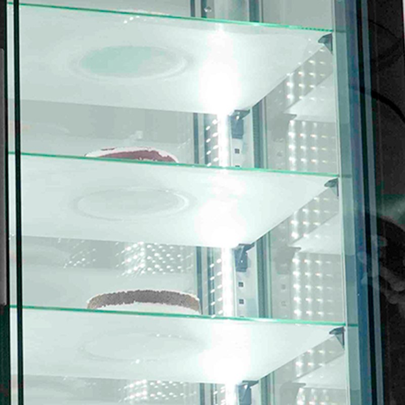 • El acabado transparente del cristal y la iluminación LED integrada resaltan el color, la textura y la frescura de los productos, creando un entorno visual atractivo que impulsa la atención de los clientes.